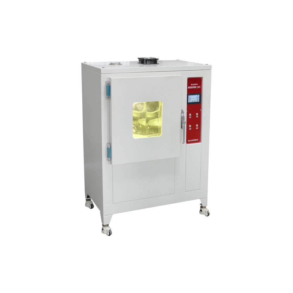 用于測定白色或淺色邦材、底材、皮革、PU、織物等鞋用材料,對光線照射的耐黃變程度,采用太陽光燈泡及加熱控溫裝置,作用試樣,測試試樣耐黃變性能。